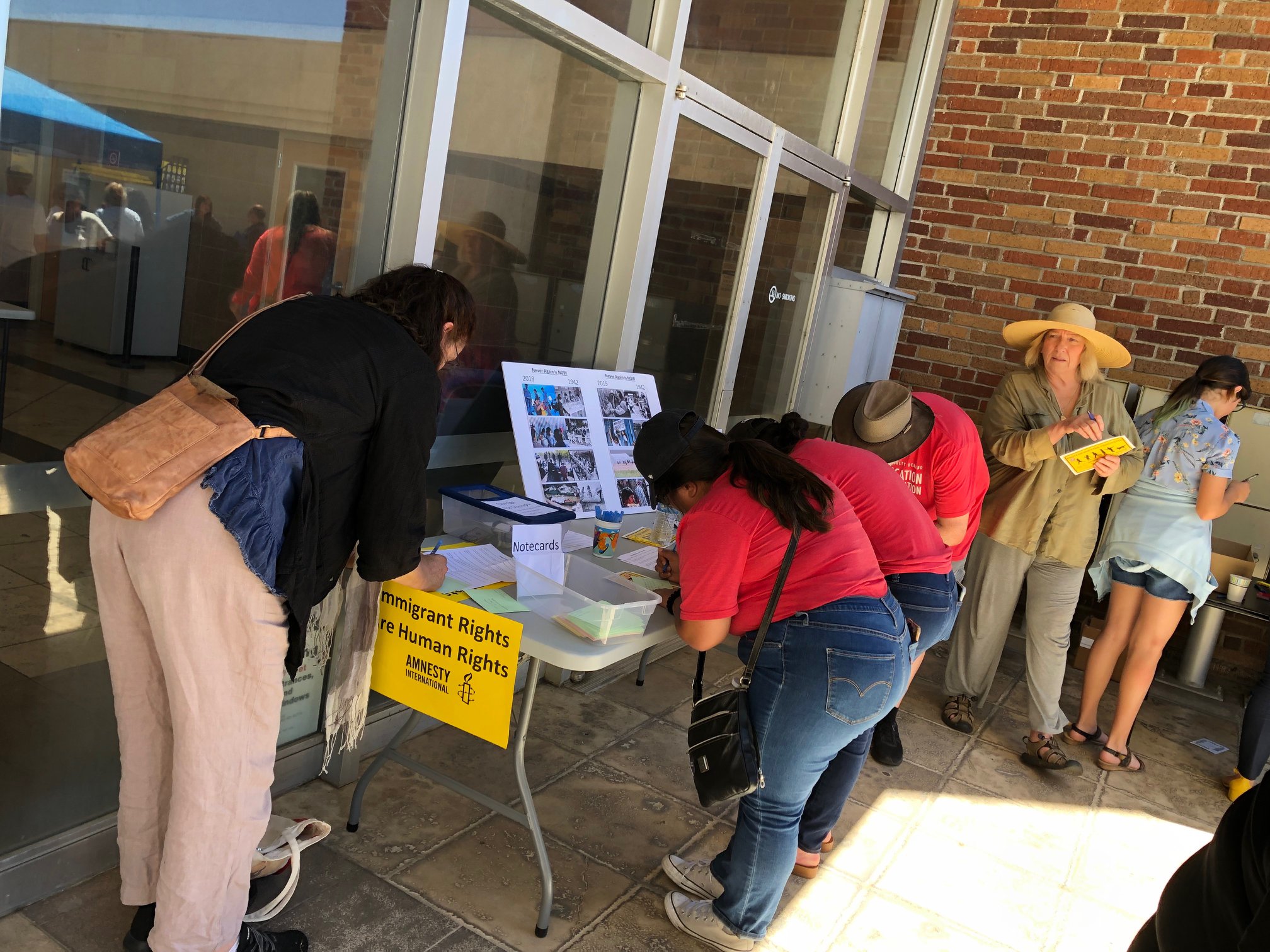 Attendees wrote notes to immigrants who are detained at Yuba County Jail and signed postcards to key officials involved in the detention program.